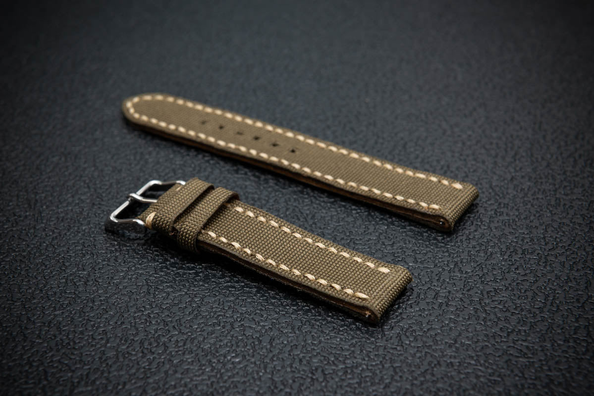 Marine sailcloth canvas watch straps, handmade with care using premium quality fabrics (produced in the USA), saddle stitched with waxed lin.