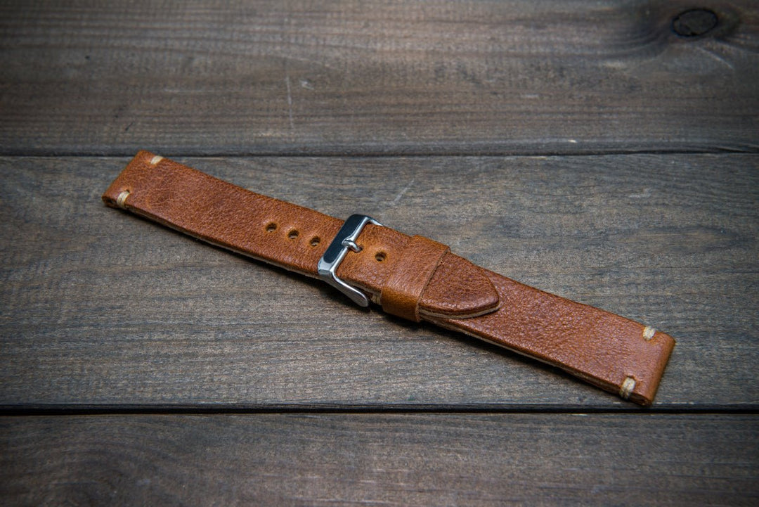 Handgefertigtes Uhrenarmband aus wunderschönem, pflanzlich gegerbtem Buttero-Leder aus der Toskana, Italien. Wir arbeiten mit den besten Gerbereien Italiens zusammen und garantieren authentische Lederqualität. Das Armbandfutter besteht aus Kalbsleder. Wasserfestes Kalbsleder als Futter ist ebenfalls erhältlich. Bitte geben Sie in den Kommentaren an, ob Sie das wasserfeste Futter für das Uhrenarmband bevorzugen. Das Leder ist langlebig und bekommt mit der Zeit eine einzigartige Patina.