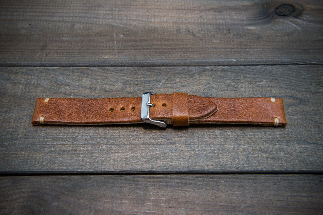 Italienisches Buttero-Lederuhrenarmband, Vintage-Lederuhrenarmband. Farbe: Englischer Sattel.