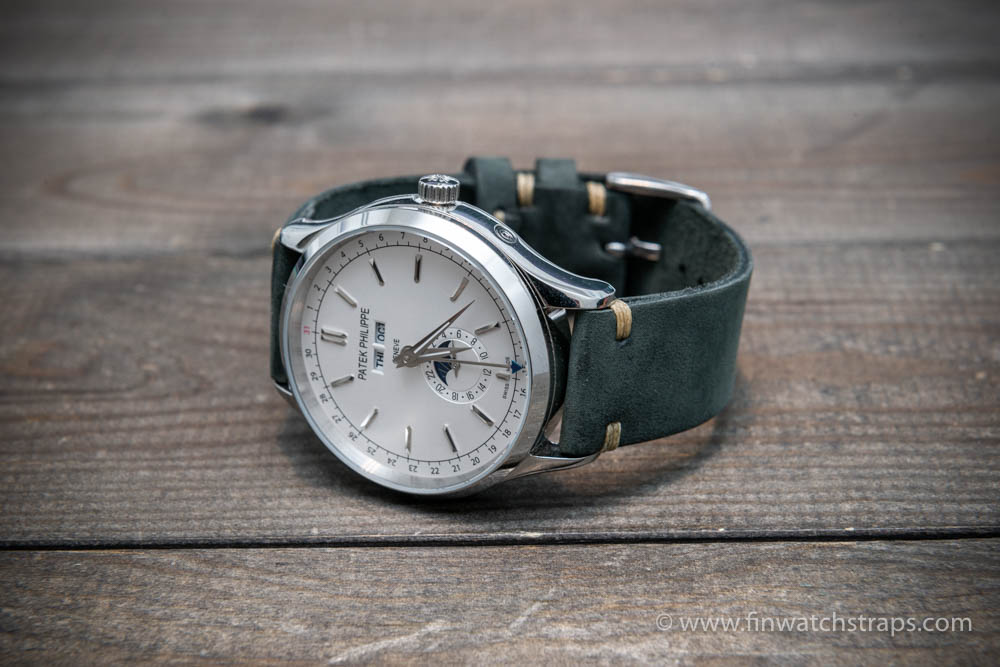 Uhrenarmband aus Leder, Horween Dusty Grey, handgefertigt in Finnland.