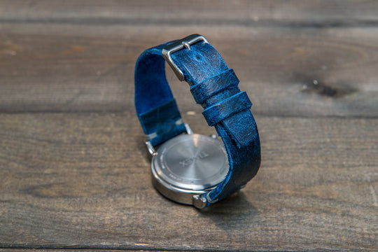 Pilot model watch band. Aviator military style Leather Watch Band. Color DEEP SEA (BLUE)