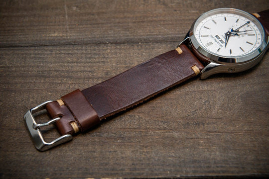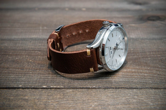 Badalassi Tobacco Wax leather watch strap. Hand-made to order in Finland. 10-26 mm