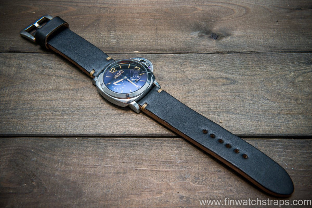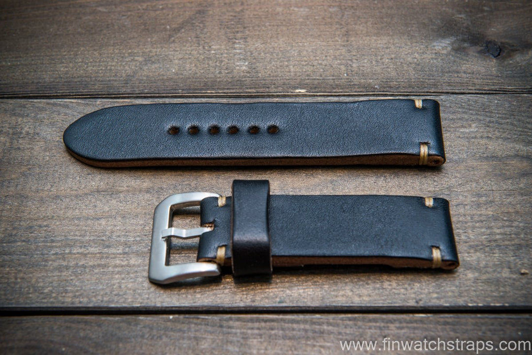 Bridle backs bull leather watch strap 5-6 mm thick, black, handmade in Finland - 16-26mm