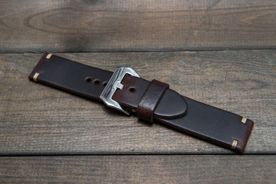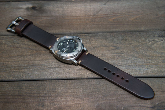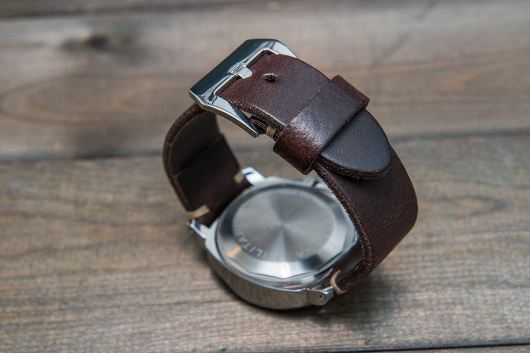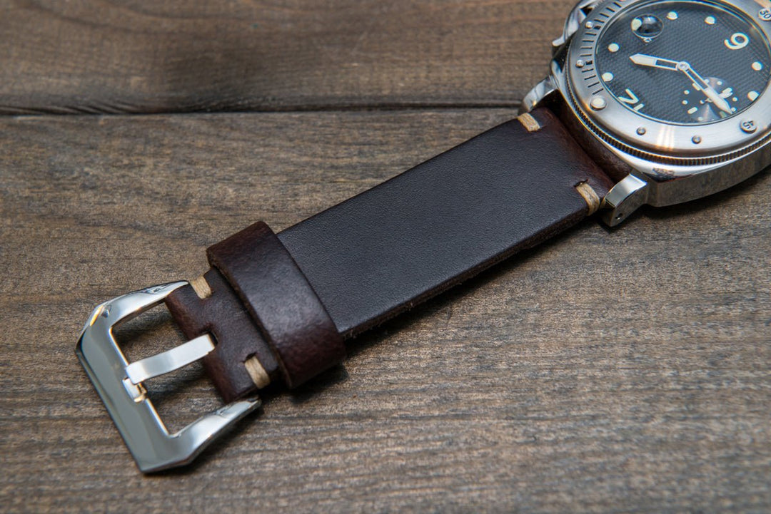 Italian leather watch strap 4 mm thick, Dark Brown, handmade in Finland - 16mm, 17 mm, 18mm, 19 mm, 20mm, 21mm, 22mm, 23 mm, 24mm, 25 mm, 26 mm.
