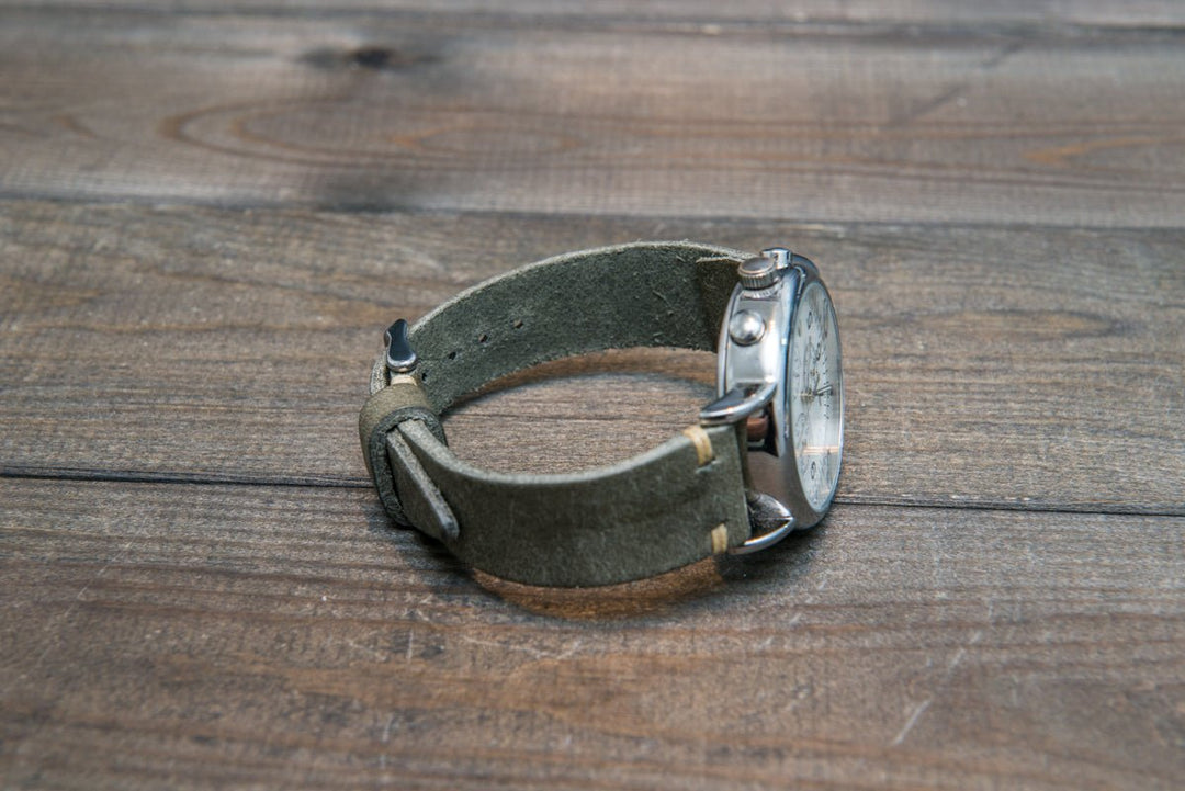 Each strap is handcrafted and custom made to order. Please, measure carefully watch lugs and your wrist before placing your order. Contact us prior to order placing if needed. Once product is cut, we do not accept changes anymore. We do not accept returns and exchanges for custom made products. Thank you for understanding. Please, note, each product is unique and might slightly differ from the listed image (leather color, leather structure, etc). For product customization, check drop-down options below or contact us via emailAlcantara suede-like lining: