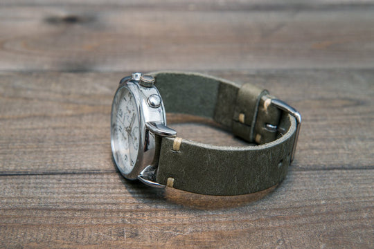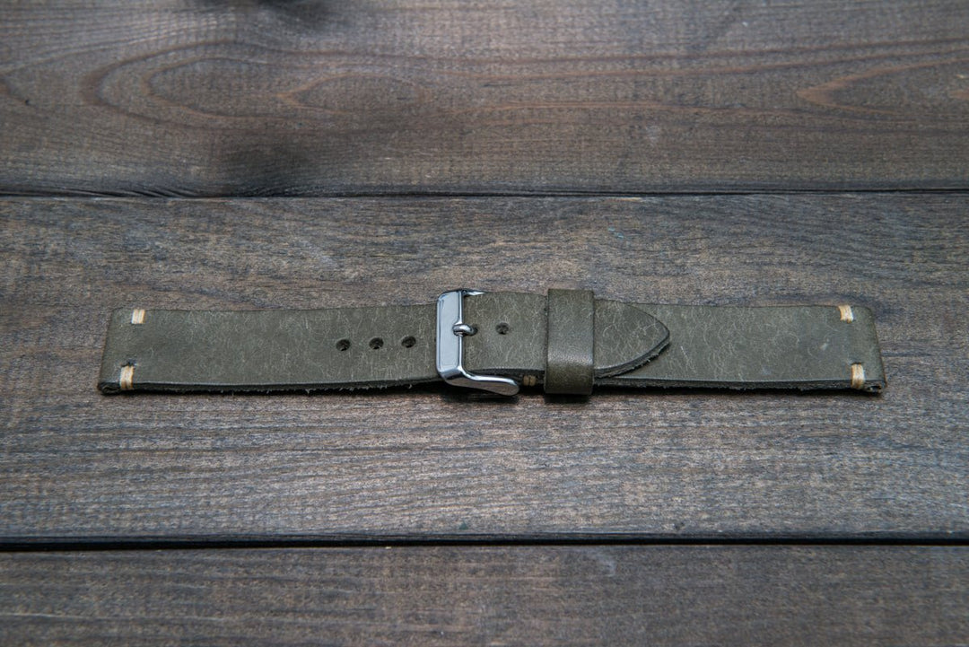 The watch strap is made of the finest Badalassi Carlo leather from Italy. The watch strap has a unique rustic look and deep color. The leather gets beautiful patina with the time. Color: Pueblo Grigio.