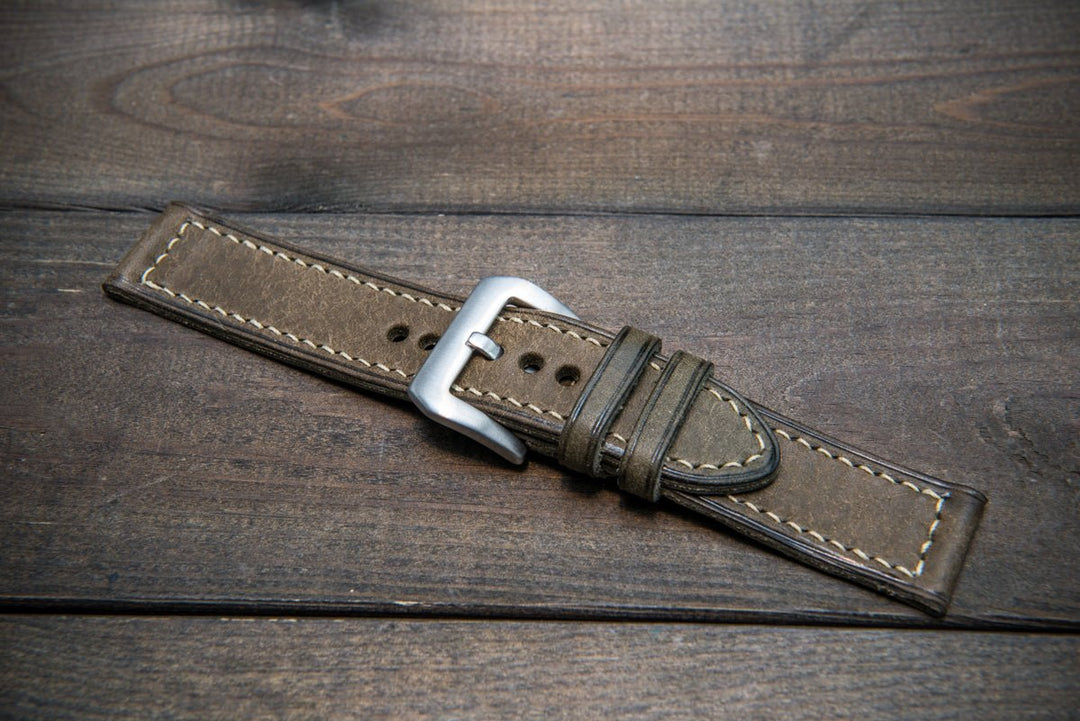 The watch straps made of the finest Badalassi Carlo leather from Italy. The watch straps have a unique rustic look and deep color. The leather gets beautiful patina with the time.