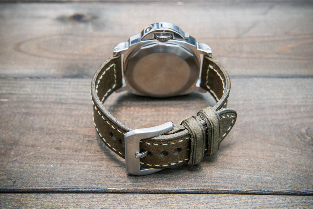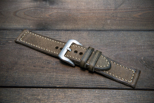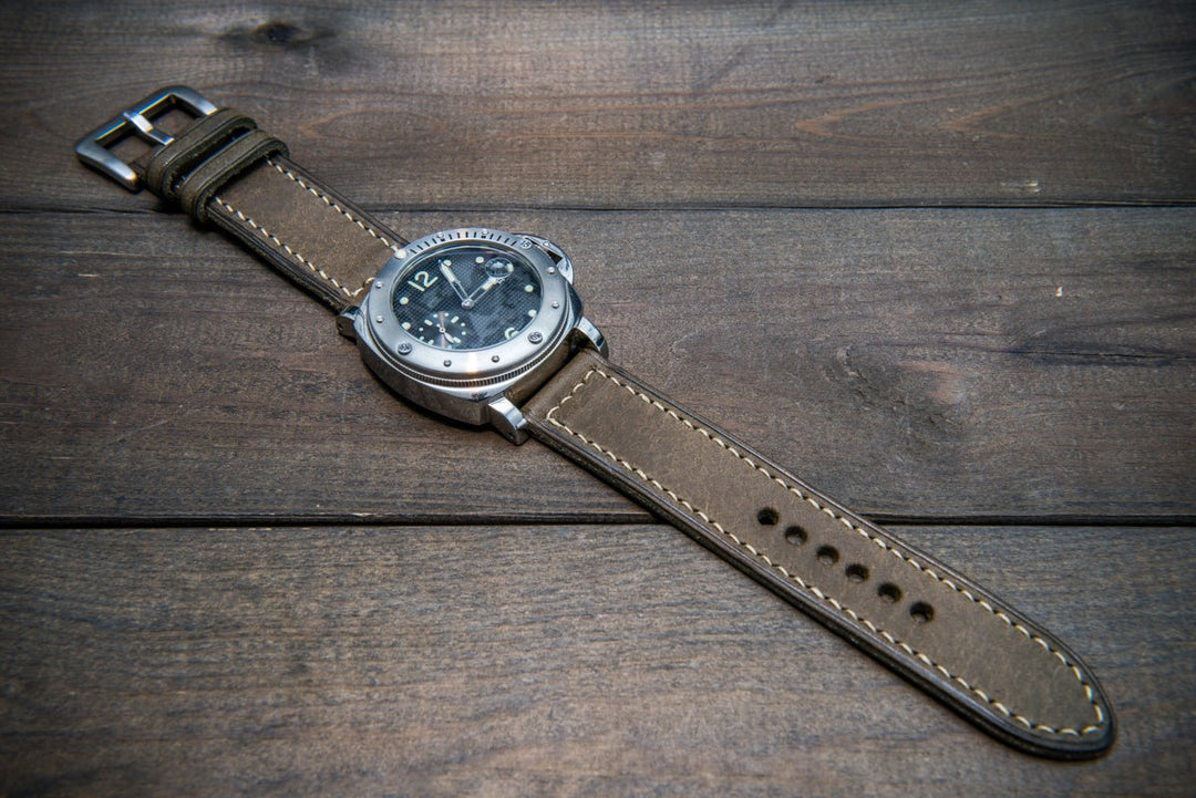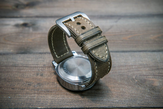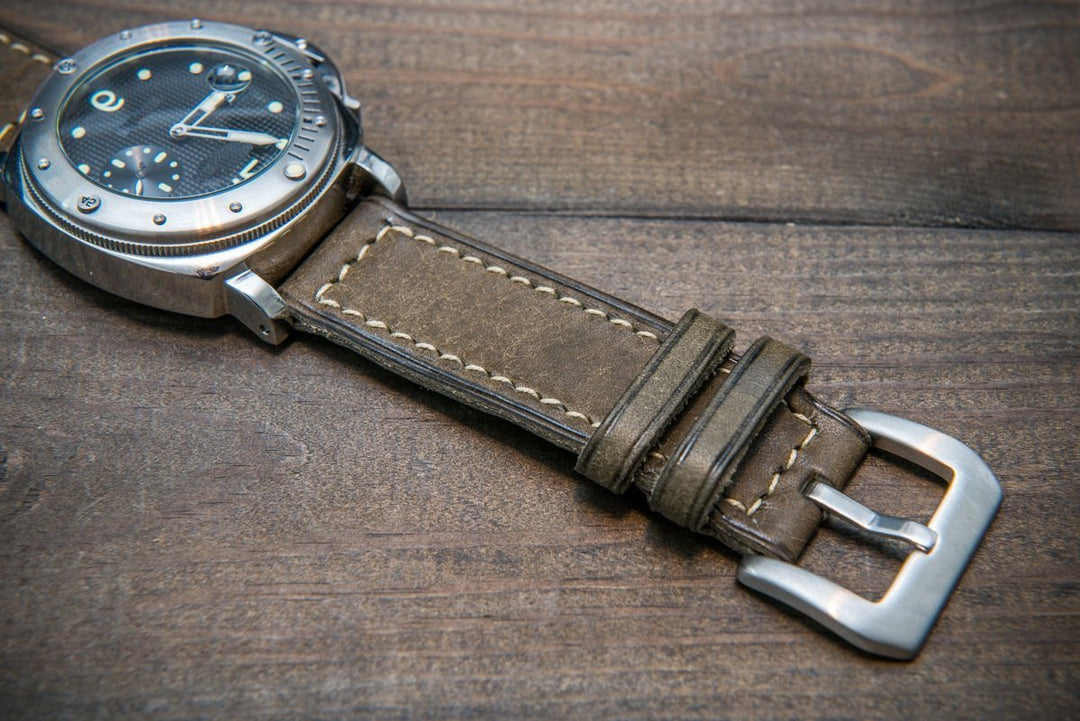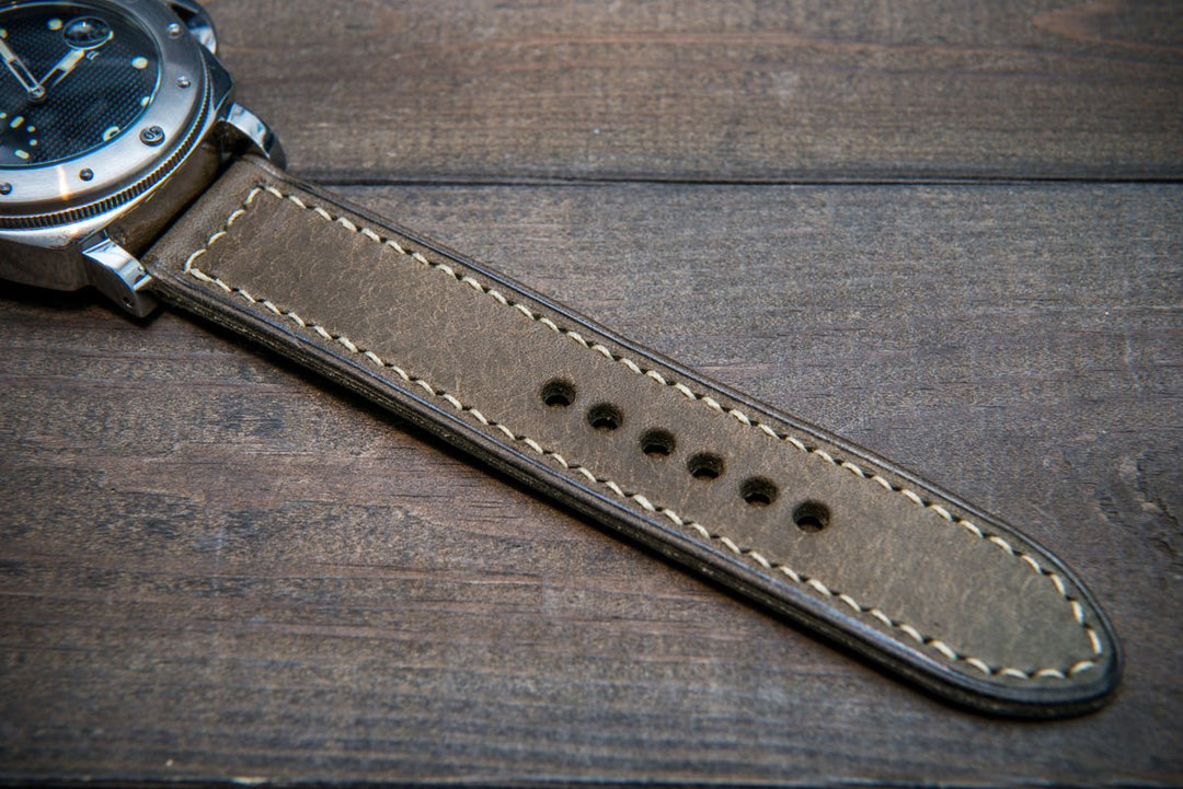 Badalassi Carlo, Pueblo Grigio leather watch strap, hand-stitched, two leather keepers, handmade in Finland