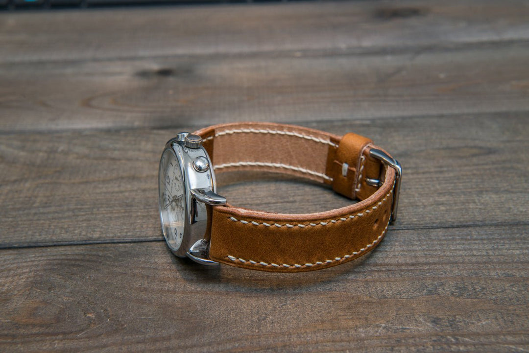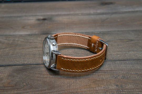 Italian Buttero leather watch band, vintage leather watch strap. Color: English Saddle.