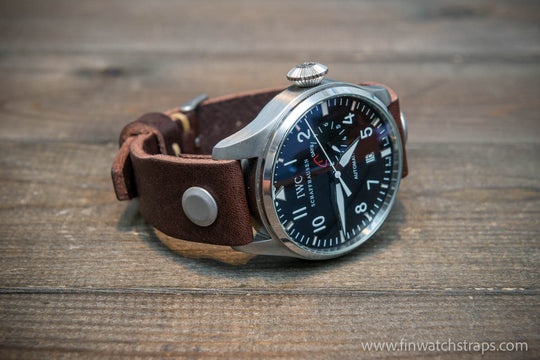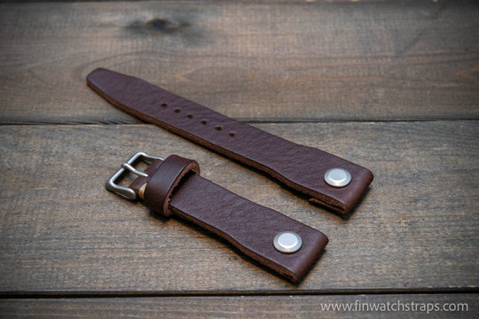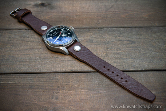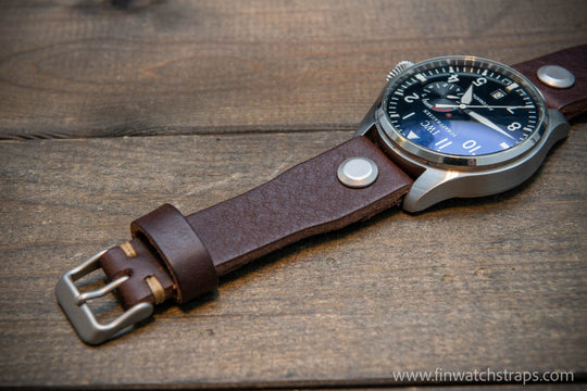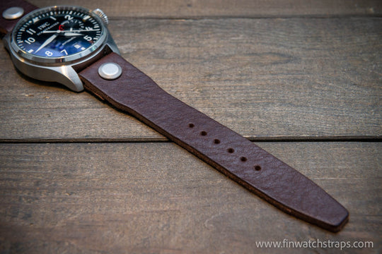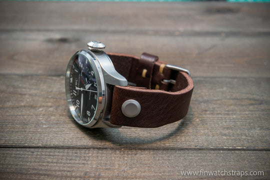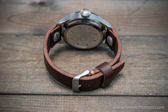 Open-ended leather watch strap with Chicago screws. Pilot style. Handmade in Finland.