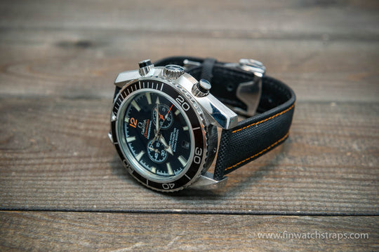 Canvas watch strap for Omega watch. Fits perfectly Omega watches, crafted using durable canvas and leather lining.