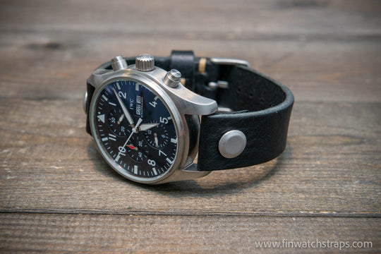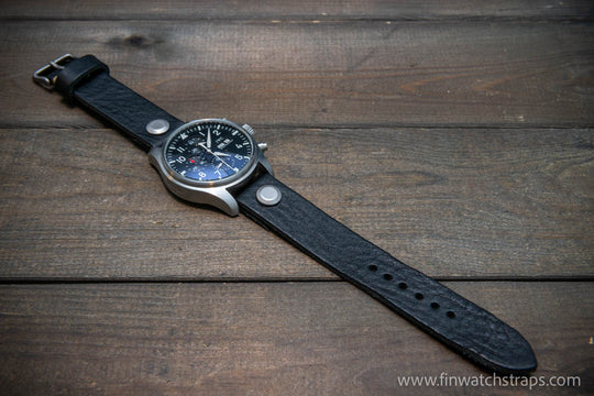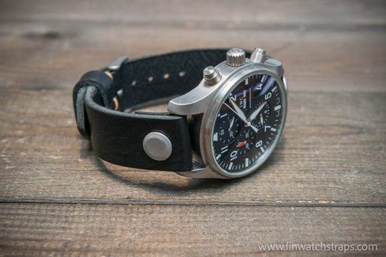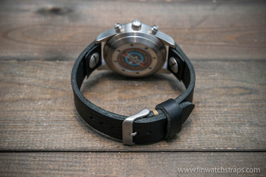 Open-ended leather watch strap with Chicago screws. Handmade in Finland.