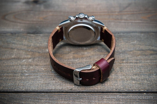 Leather watch strap, Horween Burgundy Chromexcel no 8. Handmade in Finland. Width: 16 mm - 26 mm.