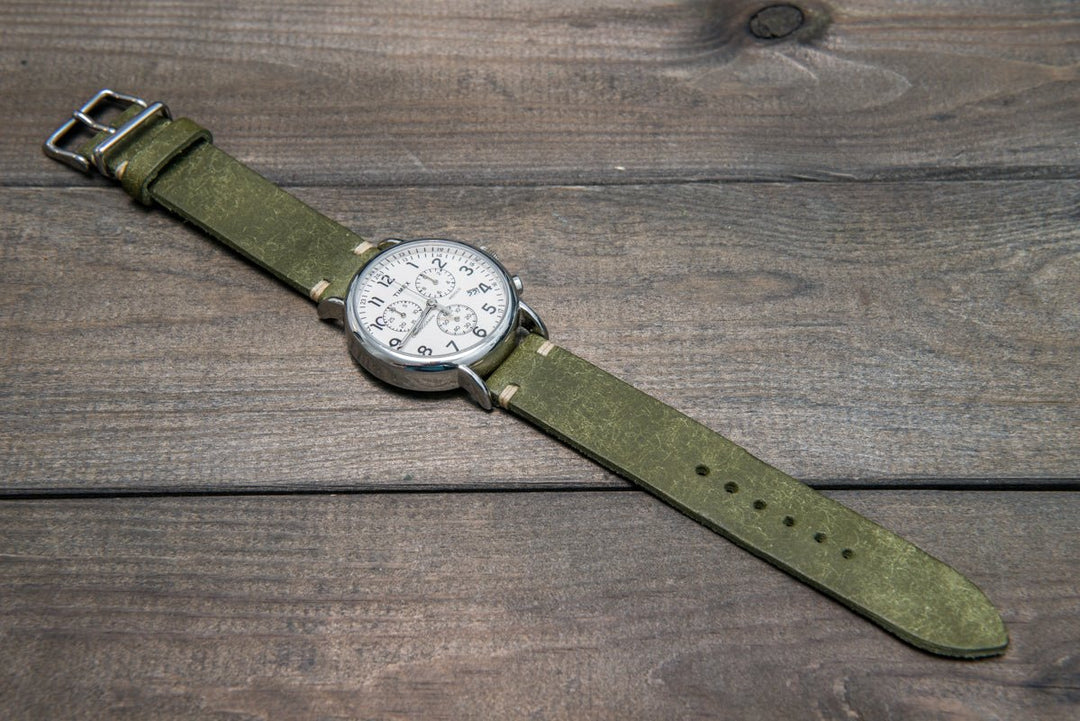 Badalassi Carlo, Pueblo Olive leather watch strap. Hand-made to order in Finland.