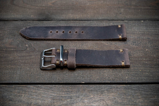 Badalassi wax Mocca brown leather watch strap. Hand-made to order in Finland. 15-26 mm