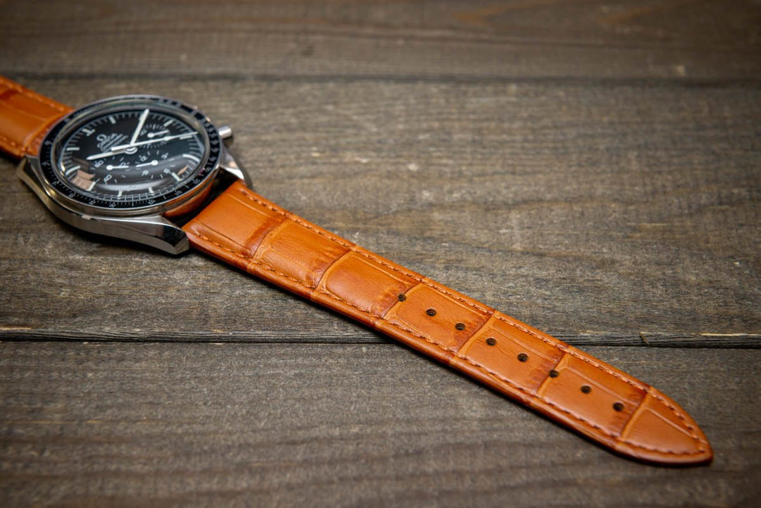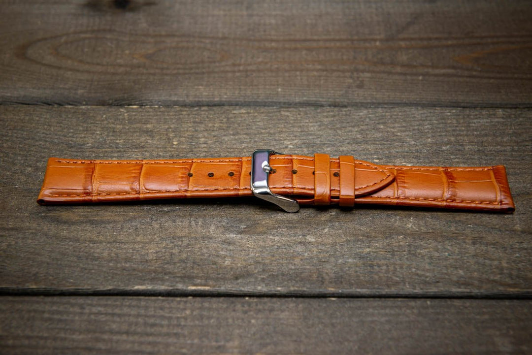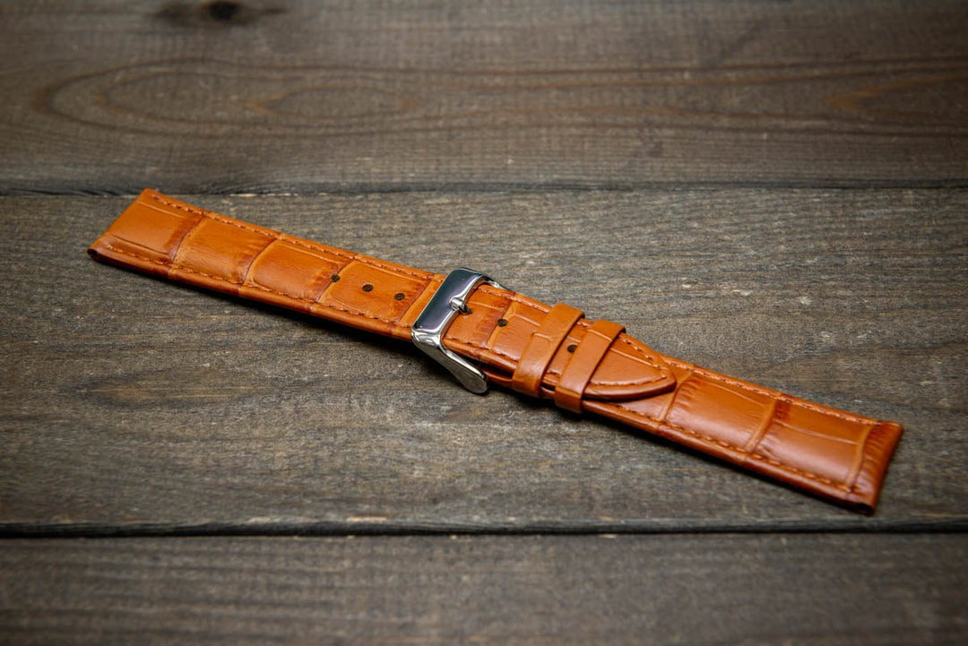 Leather watch strap made of calf leather with croc grain pattern 18, 19, 20, 21, 22 mm. Shipping worldwide.