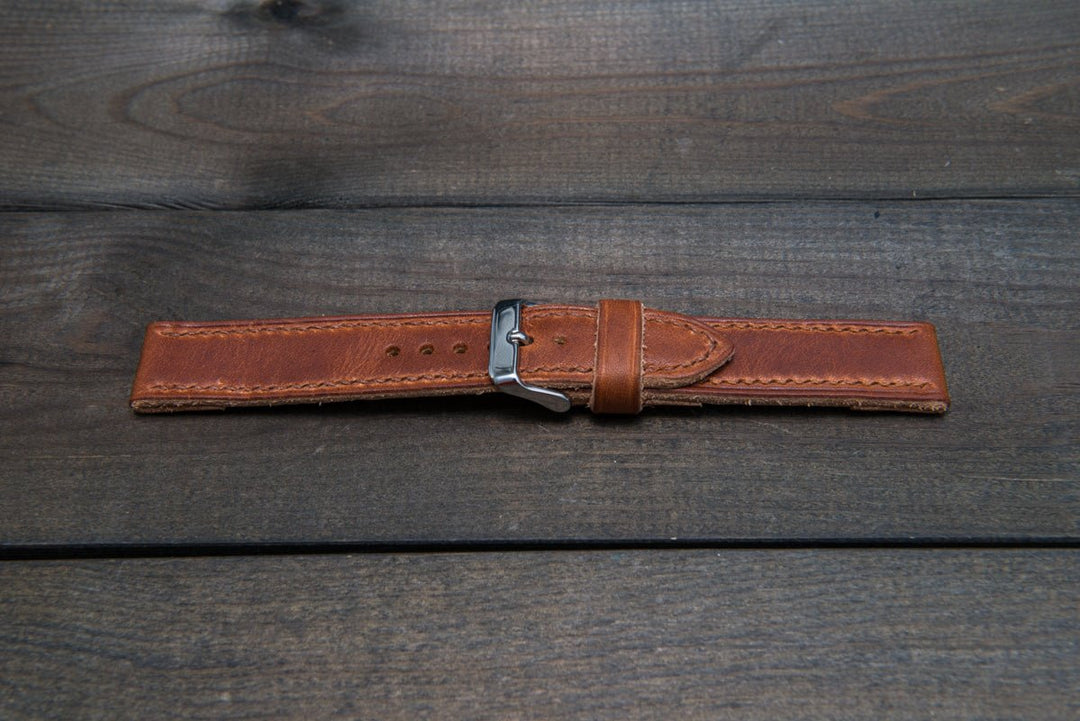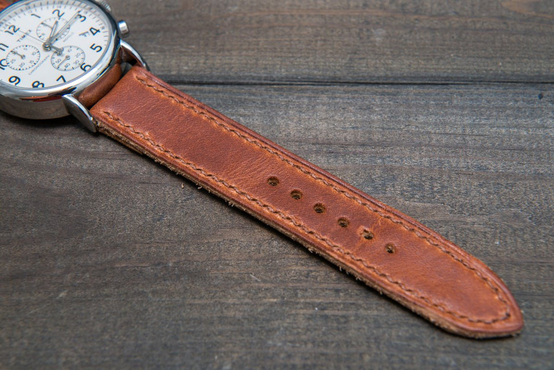 English Tan Horween hand stitched leather watch band, handmade in Finland