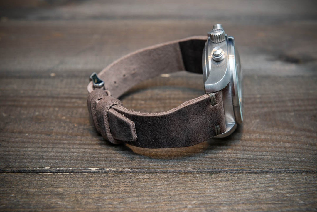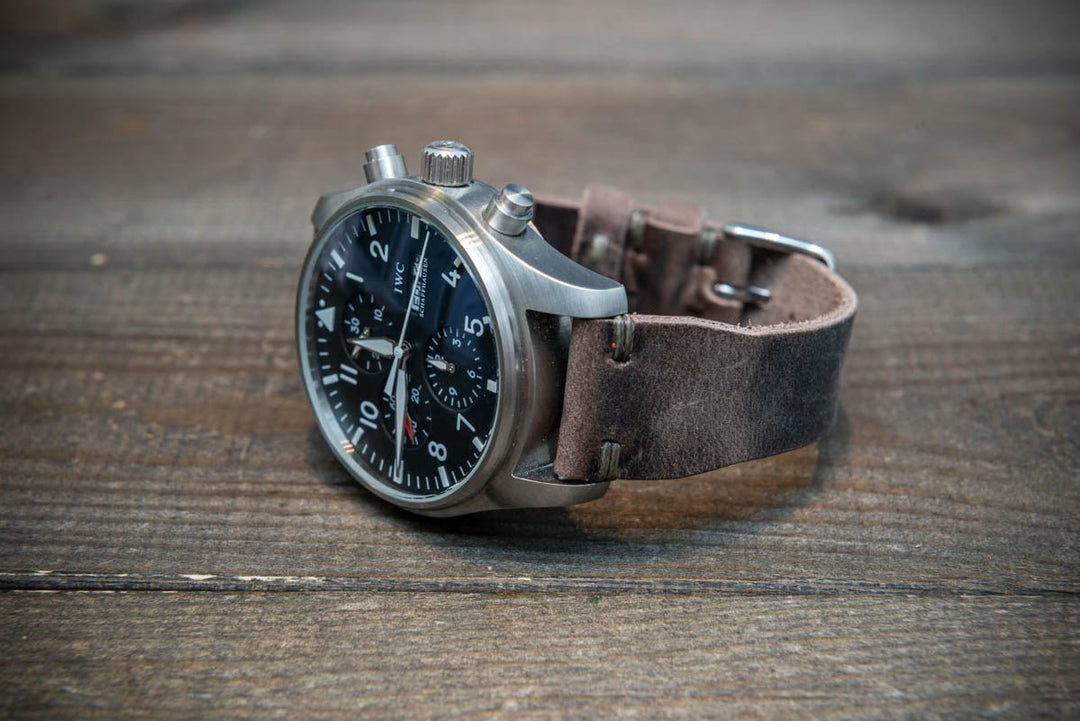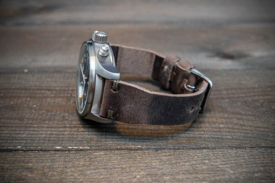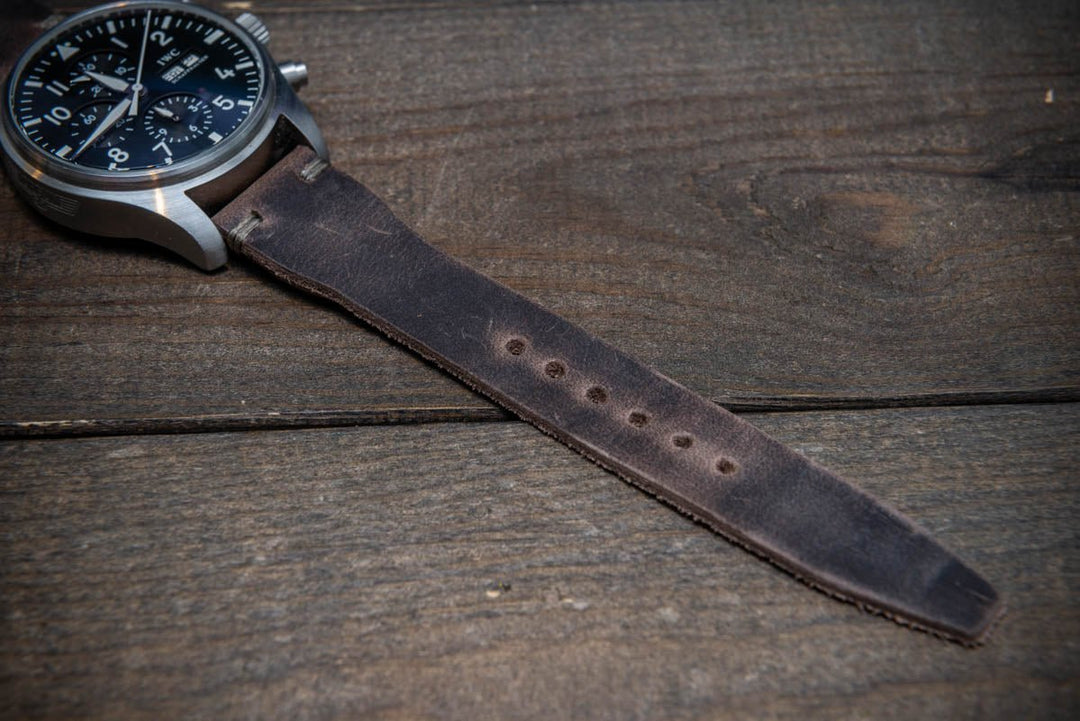 Pilot model watch band. Aviator military style Badalassi Carlo (Italy) Leather Watch Band. Mocca Fodder colour.