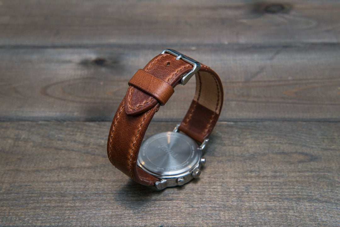 Buttero leather watch strap (Cognac), handmade in Finland - 16mm, 17 mm, 18mm, 19 mm, 20mm, 21mm, 22mm, 23 mm, 24mm, 25 mm, 26 mm.