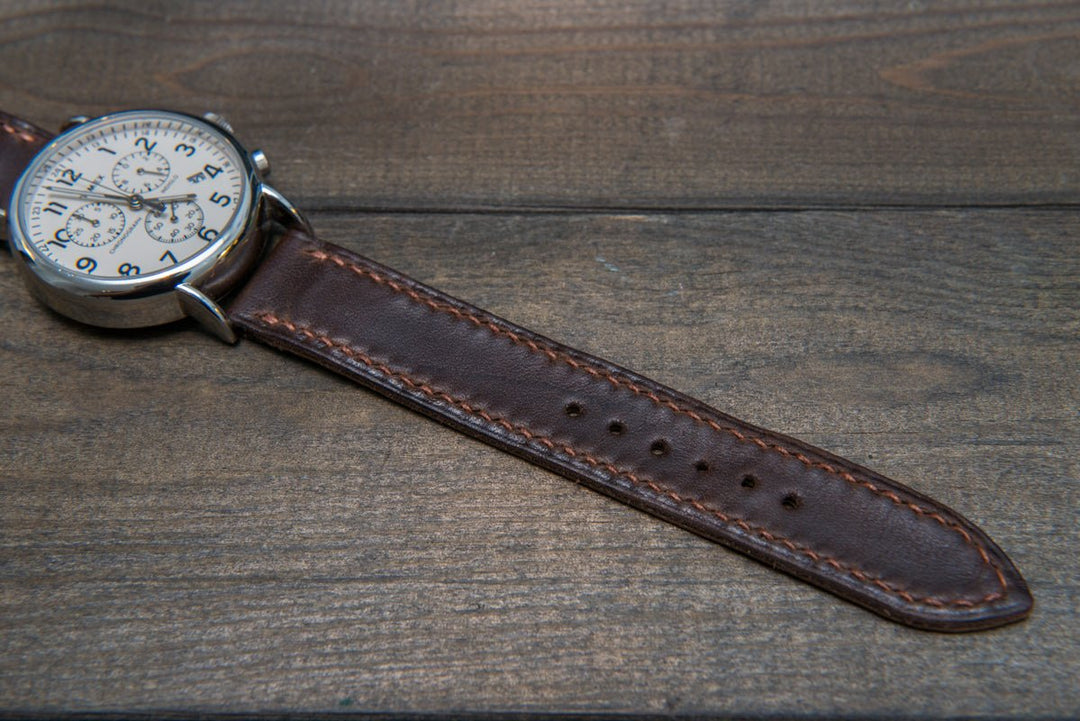 Buttero leather watch strap (Dark Brown), handmade in Finland - 16mm, 17 mm, 18mm, 19 mm, 20mm, 21mm, 22mm, 23 mm, 24mm, 25 mm, 26 mm.