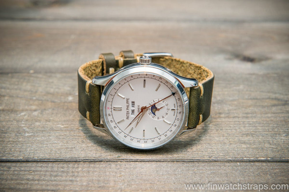 Horween Dublin Olive leather watch strap, handmade in Finland