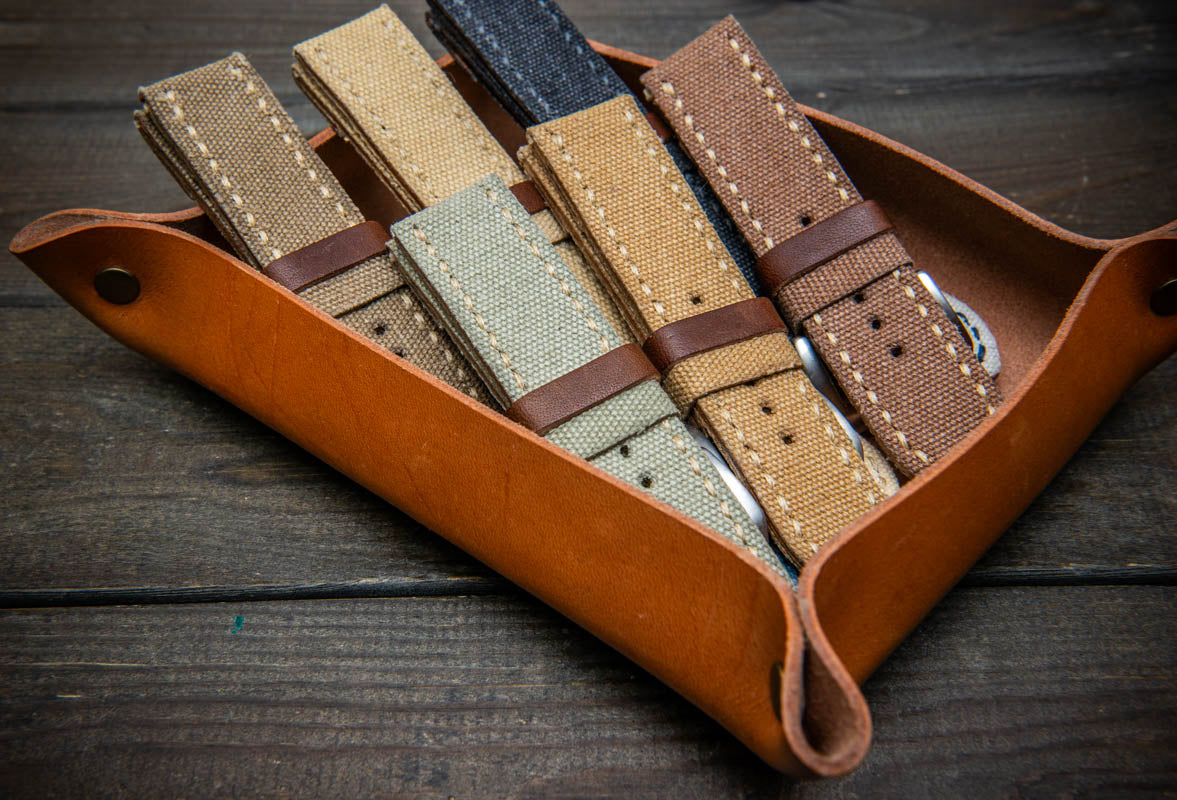 Vintage washed canvas watch strap, handmade to order, full customisation options