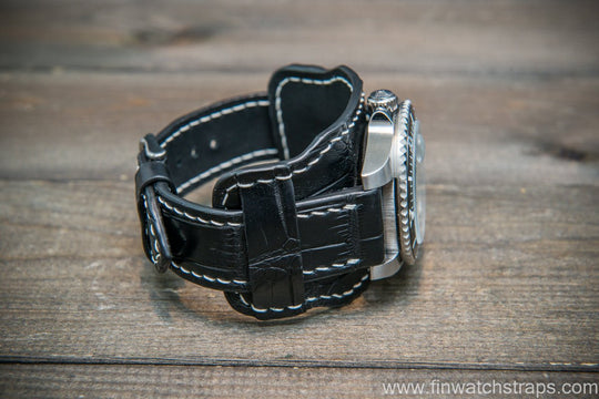 Bund model watch band. Genuise black alligator leather. Each strap is Unique and made to order.