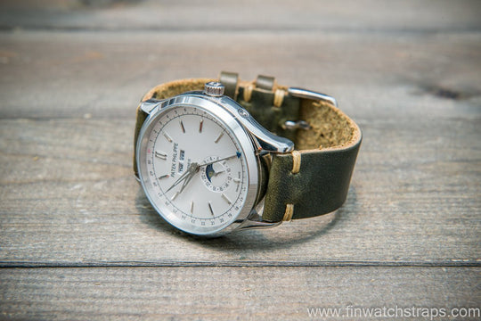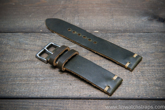 Horween Dublin Olive leather watch strap, handmade in Finland - 10mm - 26 mm.