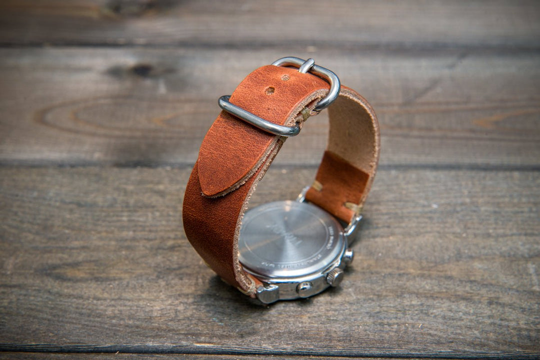 Cognac leather watch strap, handmade in Finland